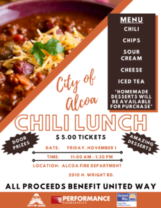 Come and Join us for this great event to support our 2024 Campaign. We would like to express a huge thank you to the City of Alcoa for all their efforts with this delicious meal for a cause!